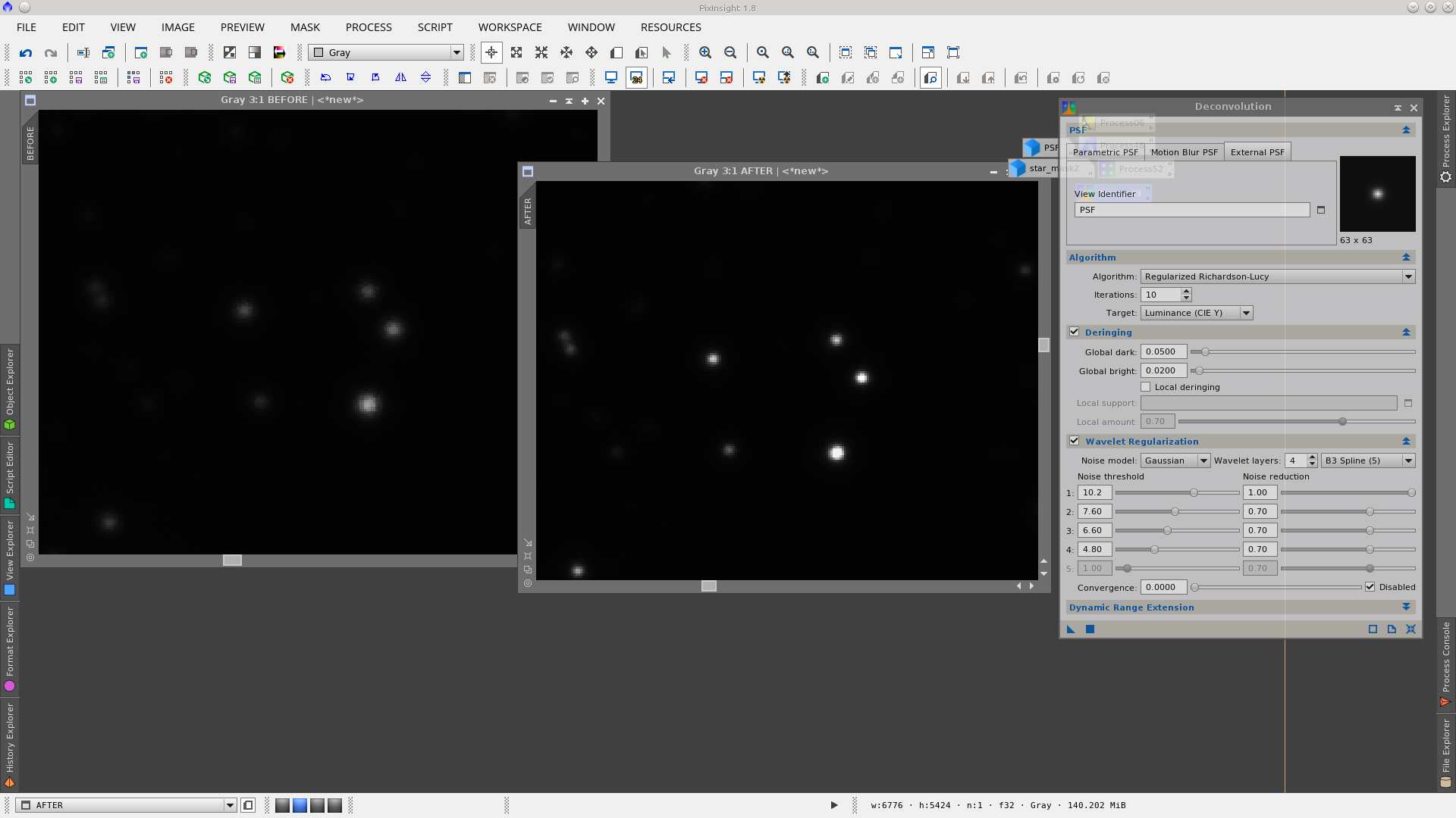 Protecting the stars with starmask apply Deconvolution. See before and after of the stars.