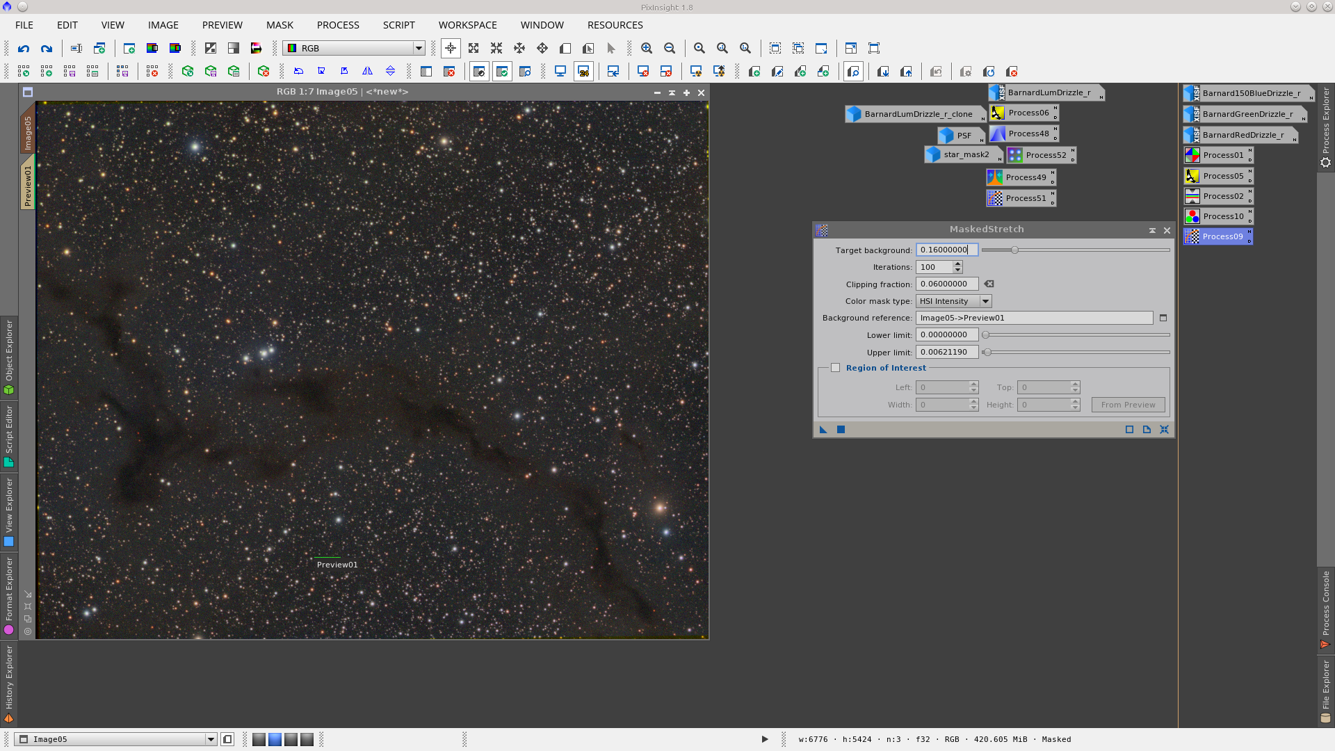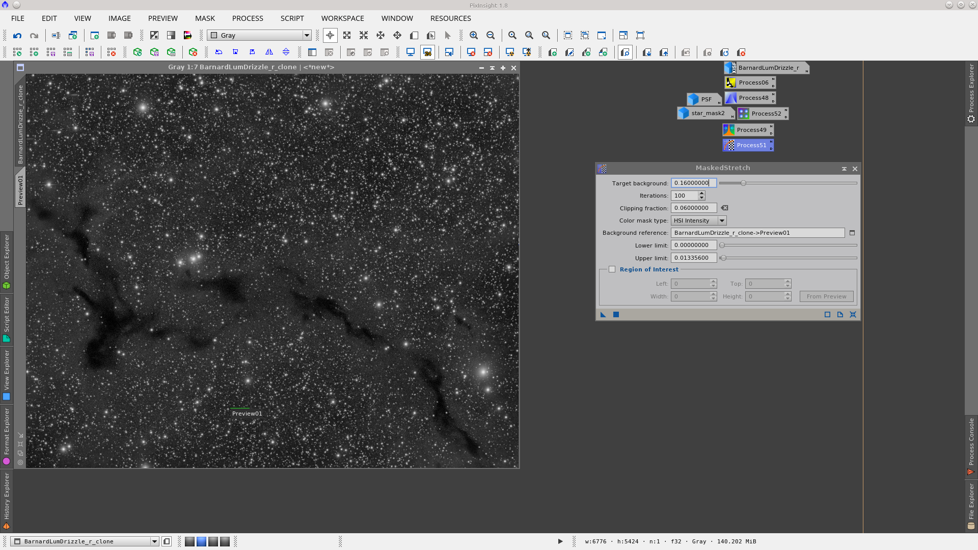 Finally stretch the Lightness using MaskedStretch tool. This is the last step in the processing of the L image.