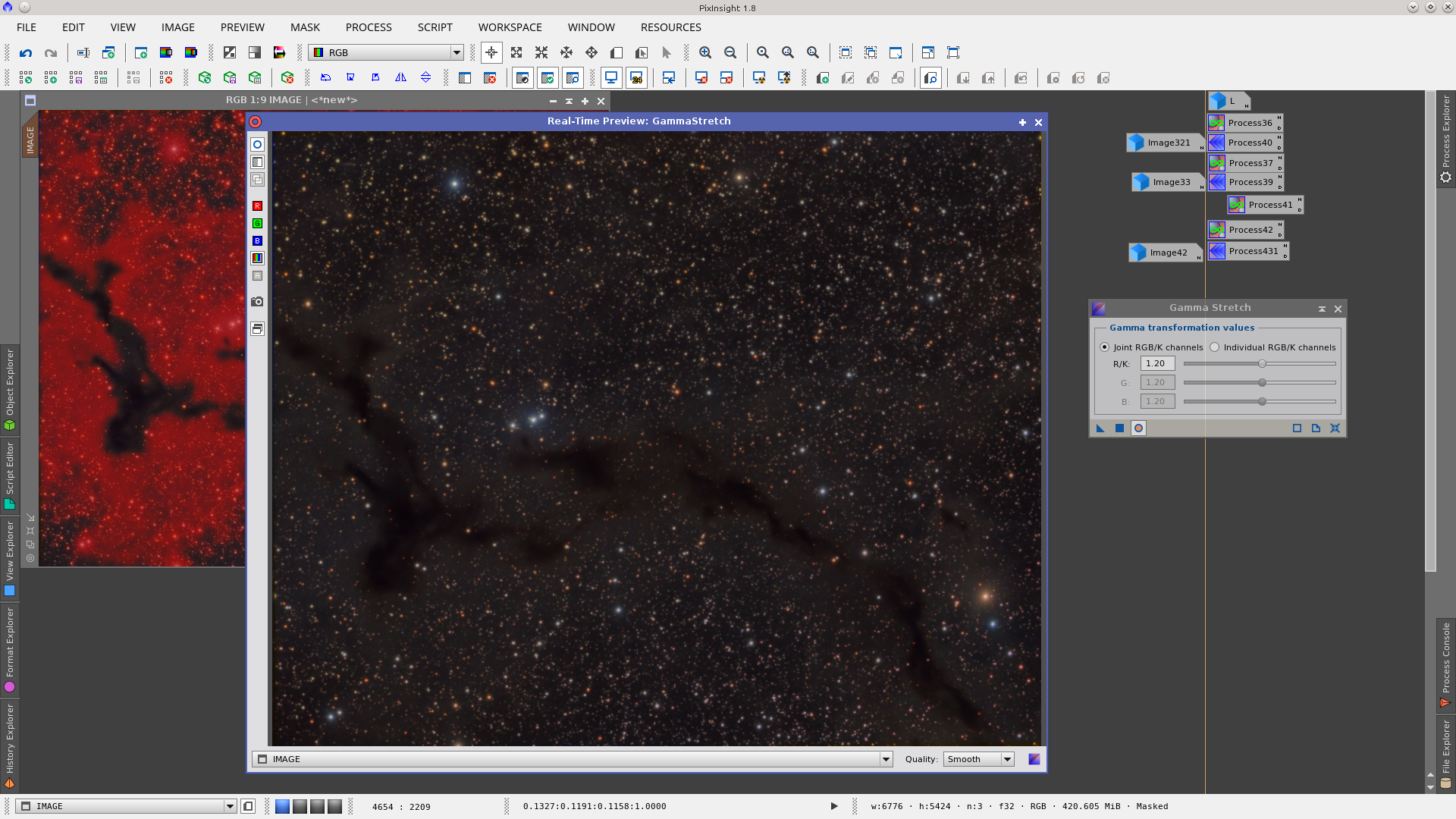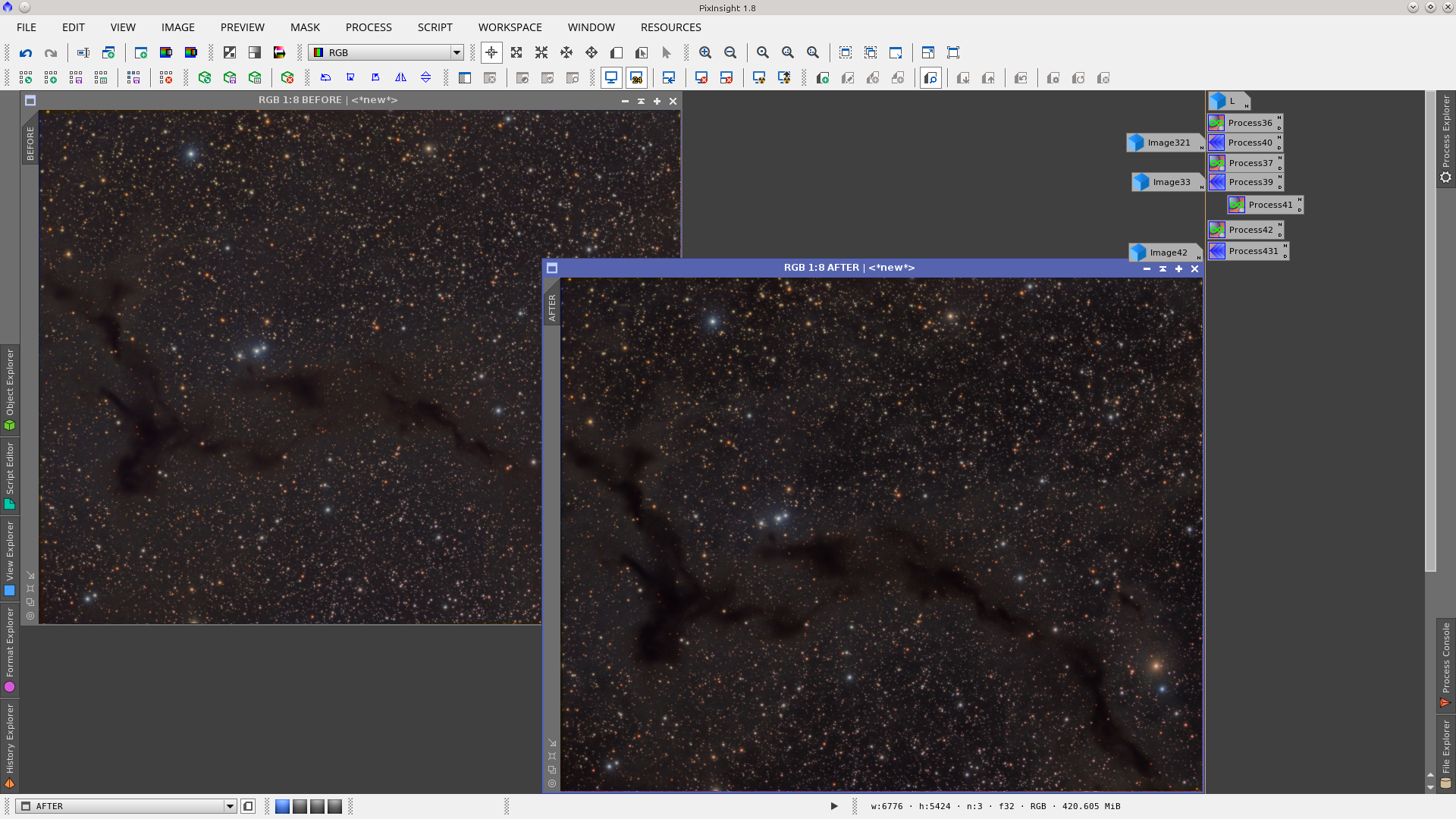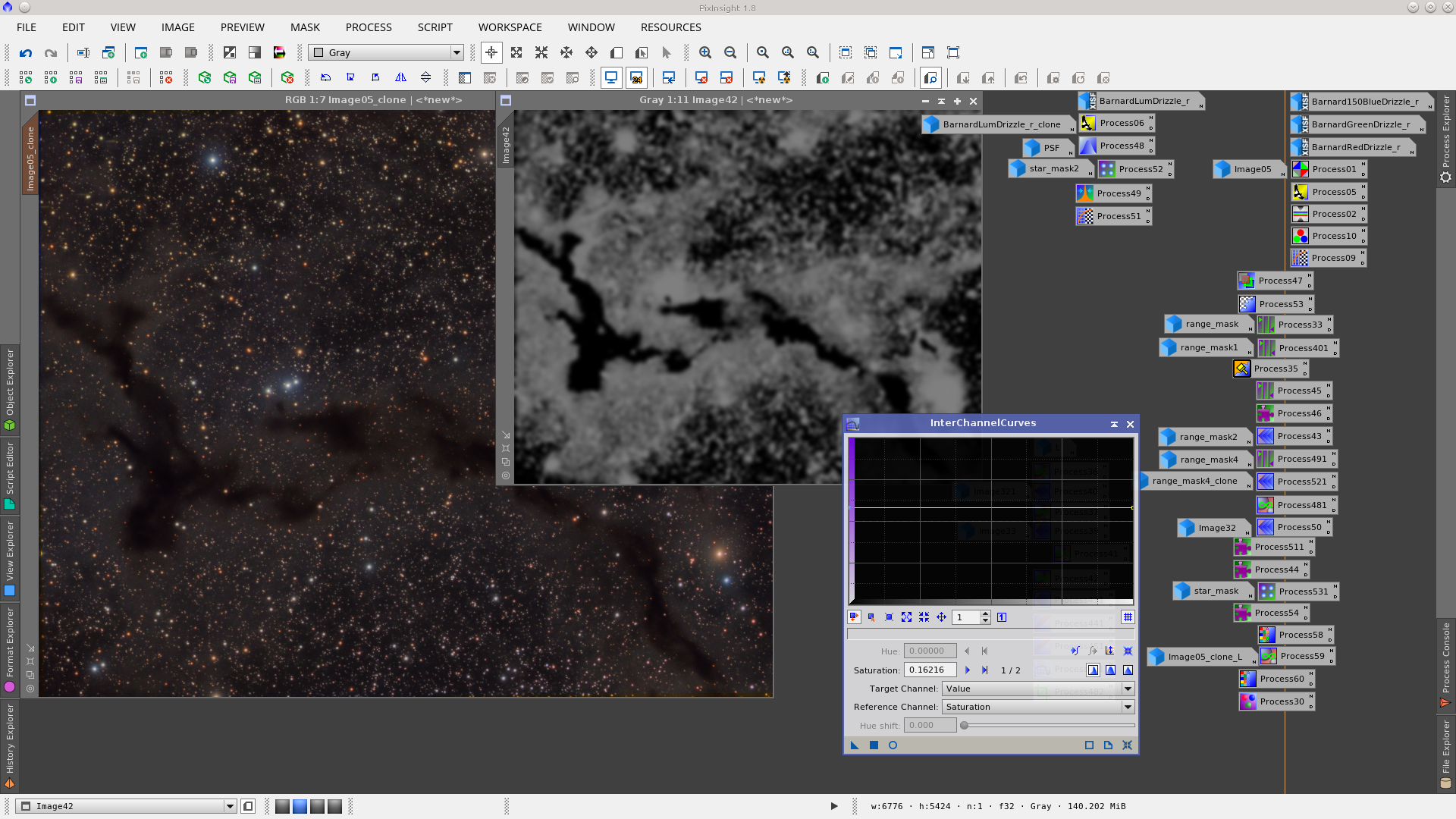 Using InterchannelCurves give a little more contraste protecting the dark nebula and background with Lmask.