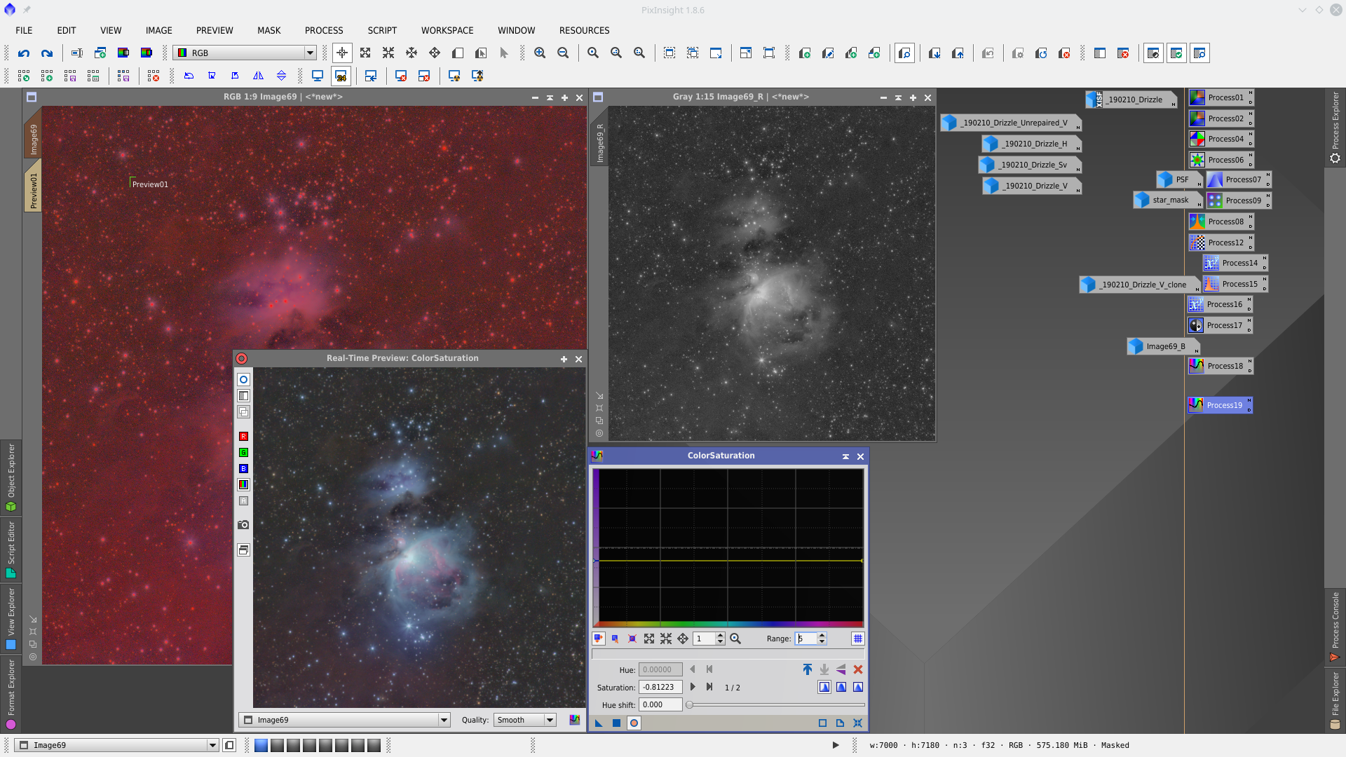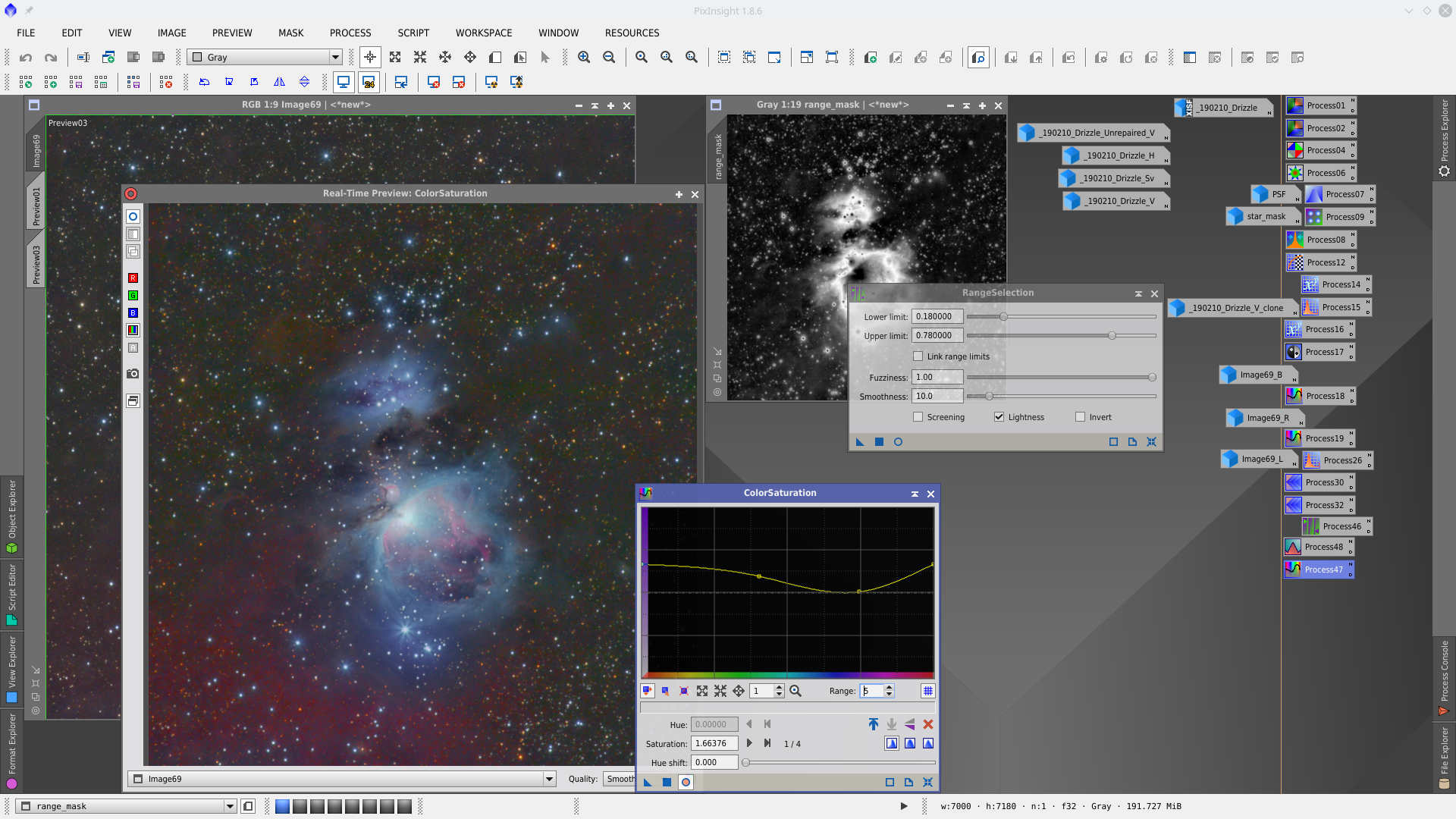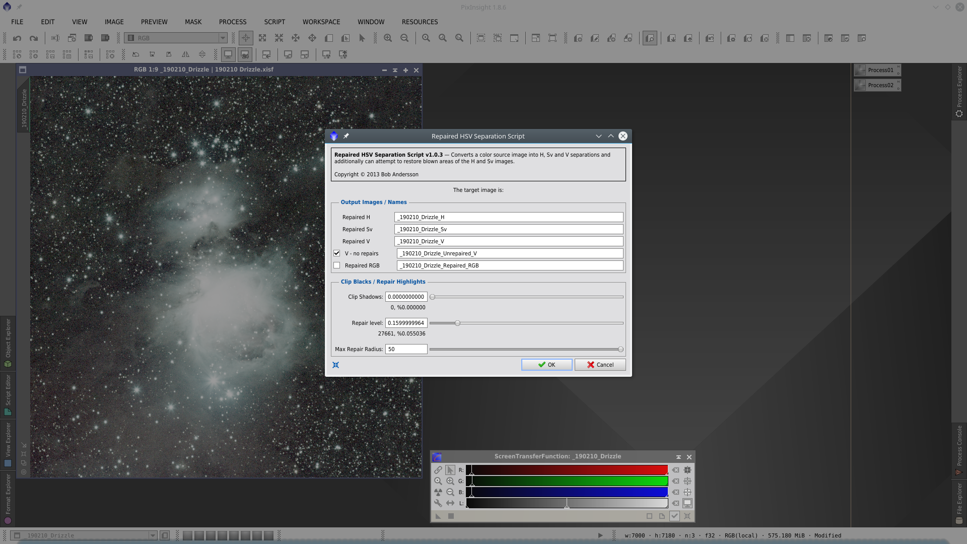 Then I used the scrpit Repaired HSV Separation to repair the star cores that are saturated. This solution is not the best and the result is not so good in this case, the suggestion is always to make HDR Composition for saturated stars.