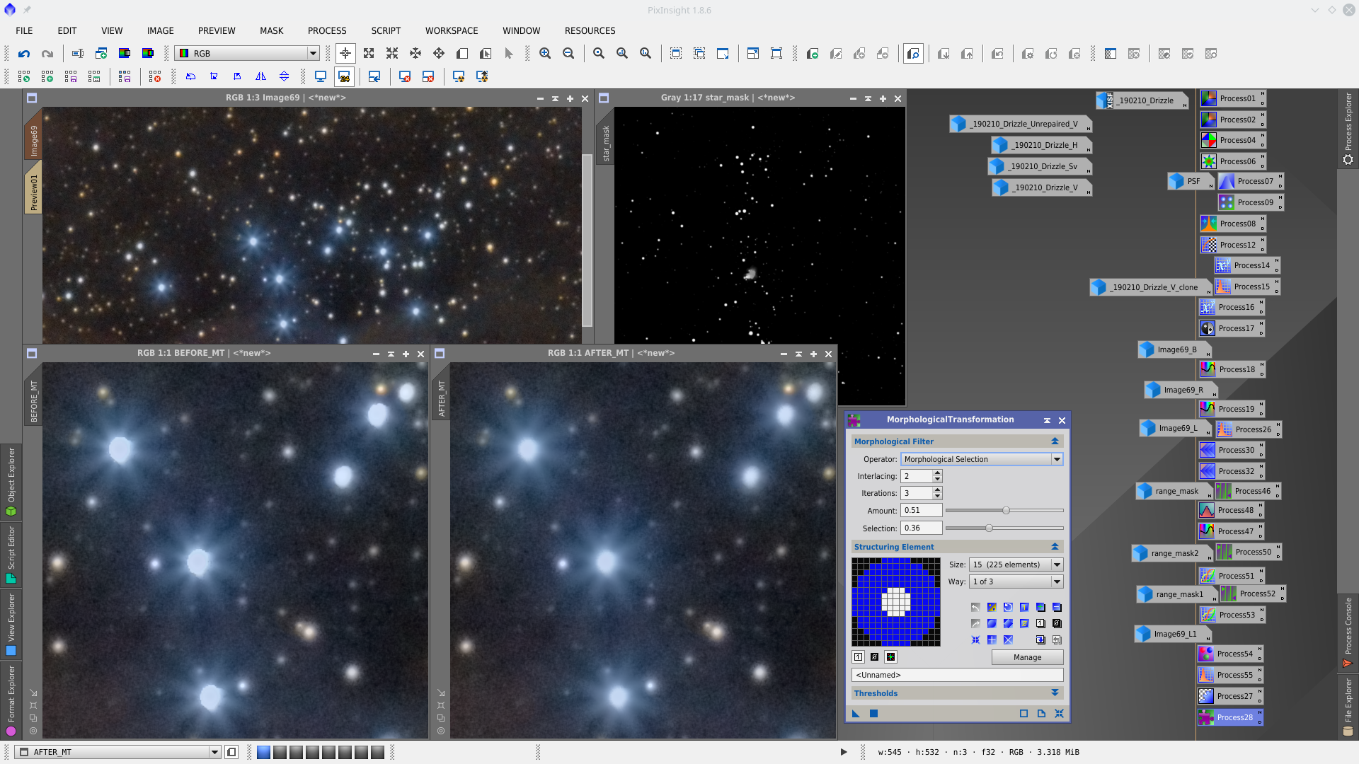 MorphologicalTransformation to reduce big stars protecting with starmask